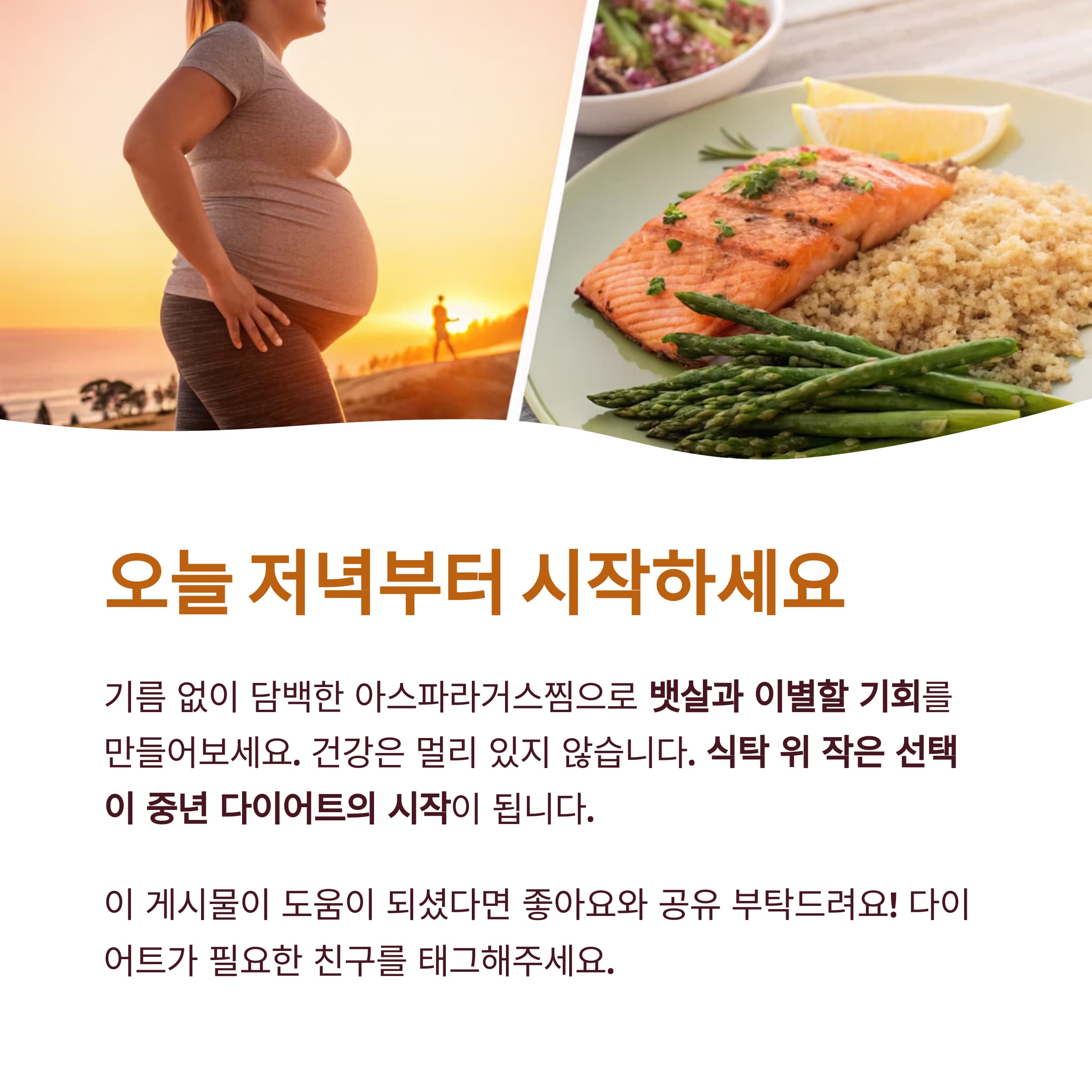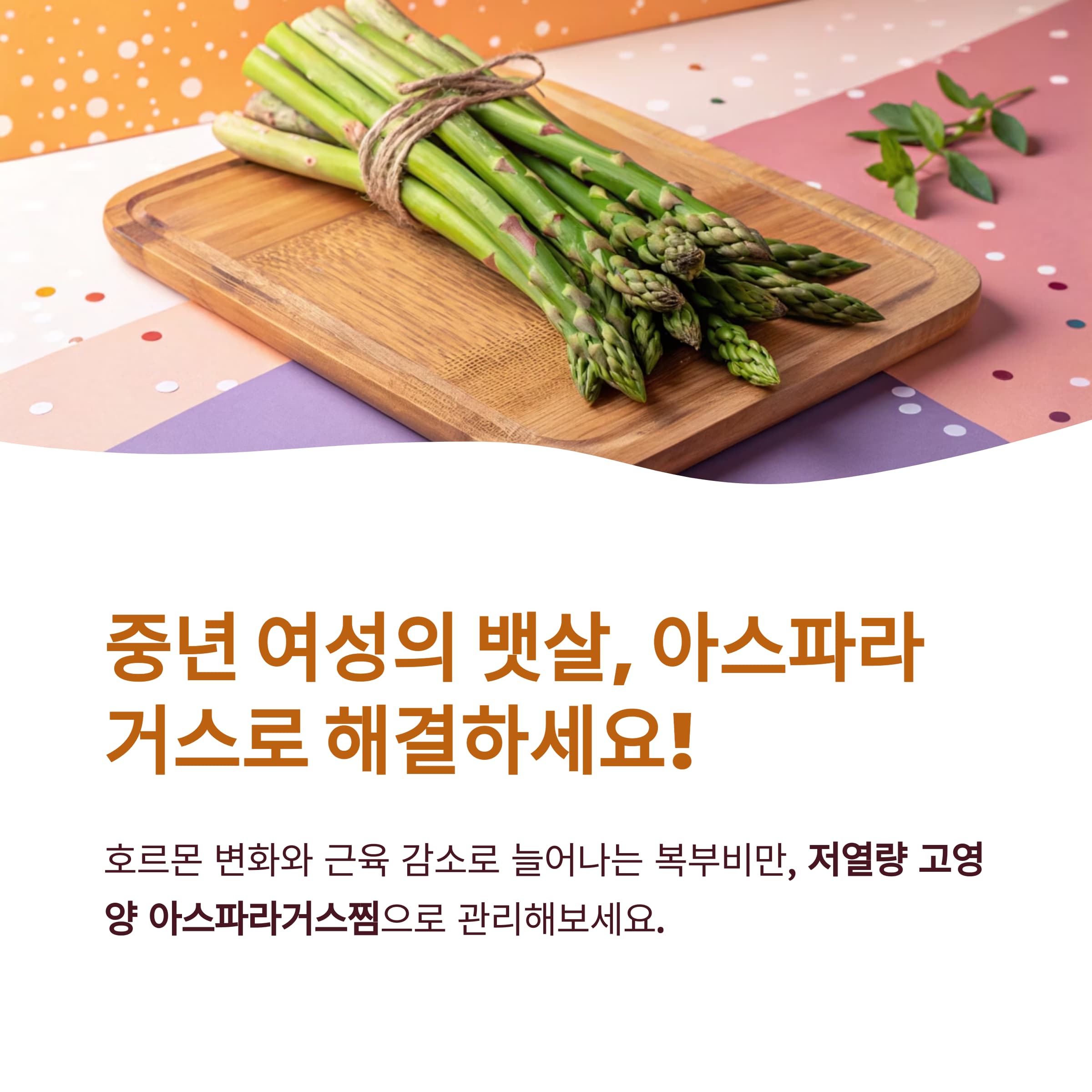 이번 글에서는 중년 여성에게 딱 맞는 **저열량 고영양 반찬 '아스파라거스찜'**을 소개합니다.