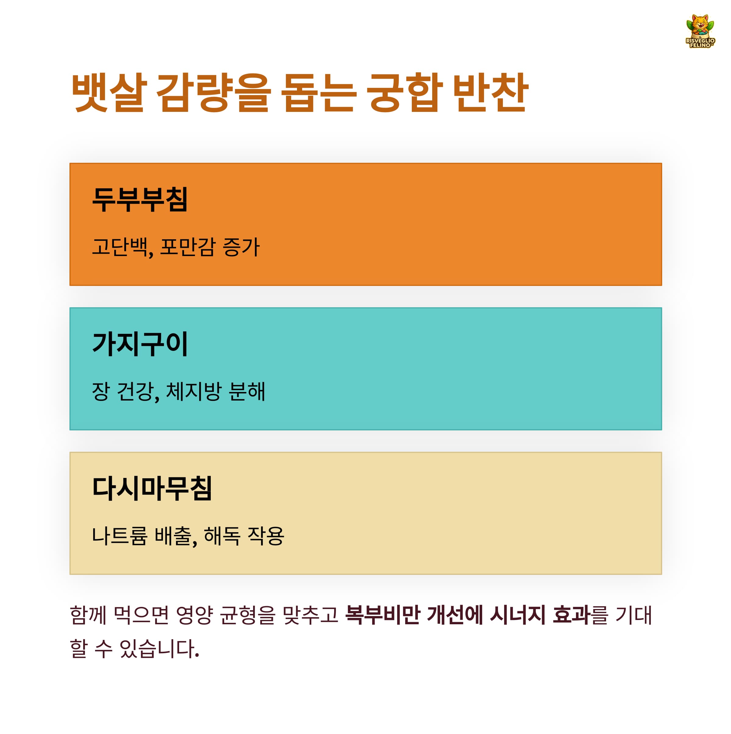 같이 먹으면 영양 균형을 맞추고 복부비만 개선에 시너지 효과를 기대할 수 있습니다.