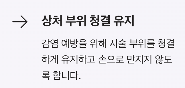 - 상처 부위 청결 유지
