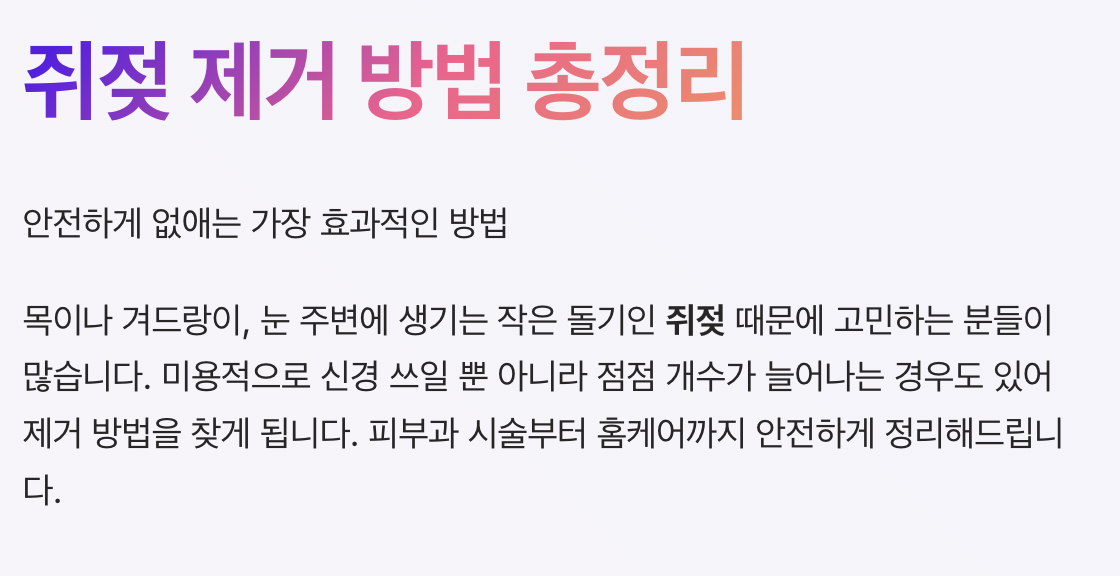 이번 포스팅에서는 쥐젖 제거 방법, 피부과 시술부터 홈케어까지 안전하게 정리해드립니다.