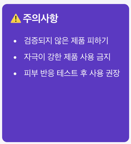 - 자극 강한 제품 사용 금지