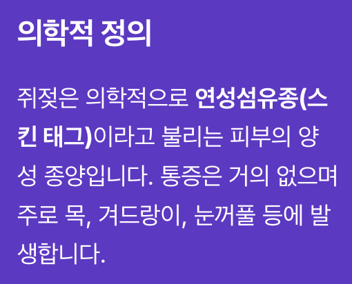 쥐젖은 의학적으로 연성섬유종(스킨 태그)이라고 불립니다.