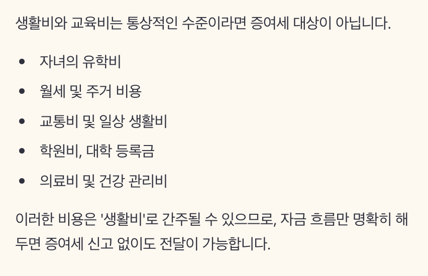 생활비·교육비 증여 제한 없음 용도 및 자금 흐름 증빙 필요