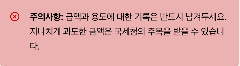 단, 무조건 안전한 건 아니니 금액과 용도에 대한 기록은 반드시 남겨두는 것이 좋아요.