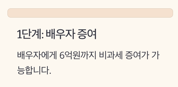 하지만 배우자에게 6억원까지 비과세 증여 후, 배우자가 다시 자녀에게 5천만원까지 비과세 증여하면 총 1억1천만원을 무세금으로 이전할 수 있습니다.