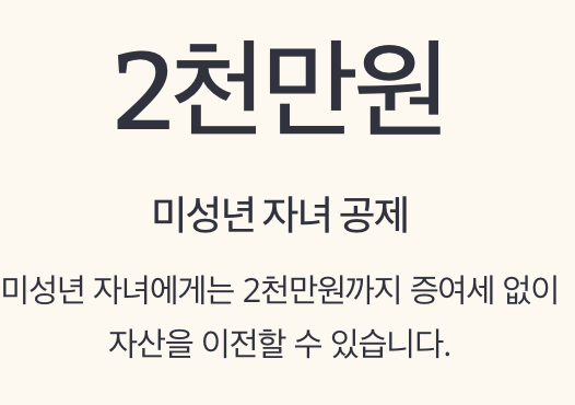 가장 기본이지만 가장 강력한 절세 전략입니다. 증여세는 일정 금액까지는 공제를 받을 수 있어요.
