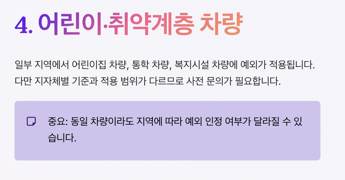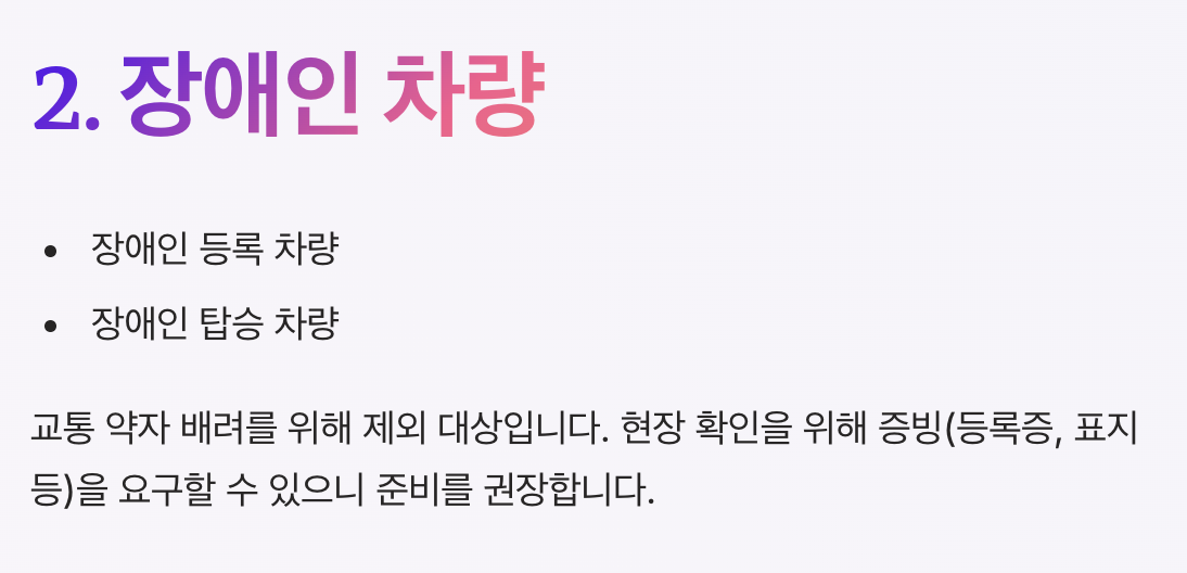 - 장애인 차량 및 긴급 차량 제외