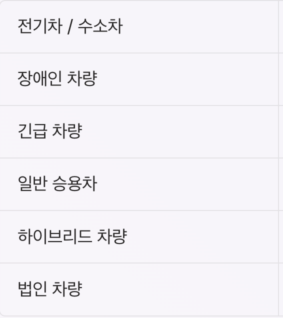 | 적용 대상 | 차량 전체 | 공영주차장 |