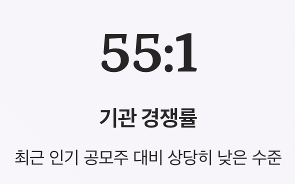 이 수치는 최근 인기 공모주 대비 상당히 낮은 수준입니다.
