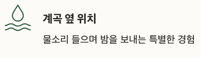 자연은 느끼고 싶지만 번거로운 캠핑 장비는 부담이라면, 담터 오지 글램핑이 정답입니다. 계곡 바로 옆이라 물소리 들으며 밤을 보내는 특별한 경험을 할 수 있어요.