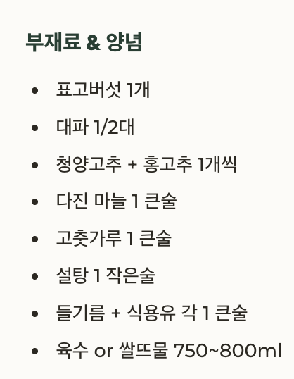 | 육수 선택 | 쌀뜨물 or 다시팩 육수 추천 |