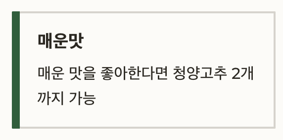 - 매운 맛을 좋아한다면 청양고추 2개까지 가능
