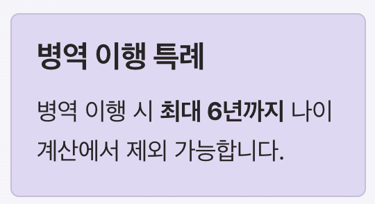- 병역 이행 시 최대 6년까지 나이 계산 제외 가능