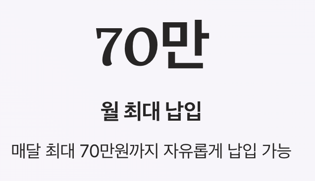| 납입 금액 | 월 최대 70만원 |