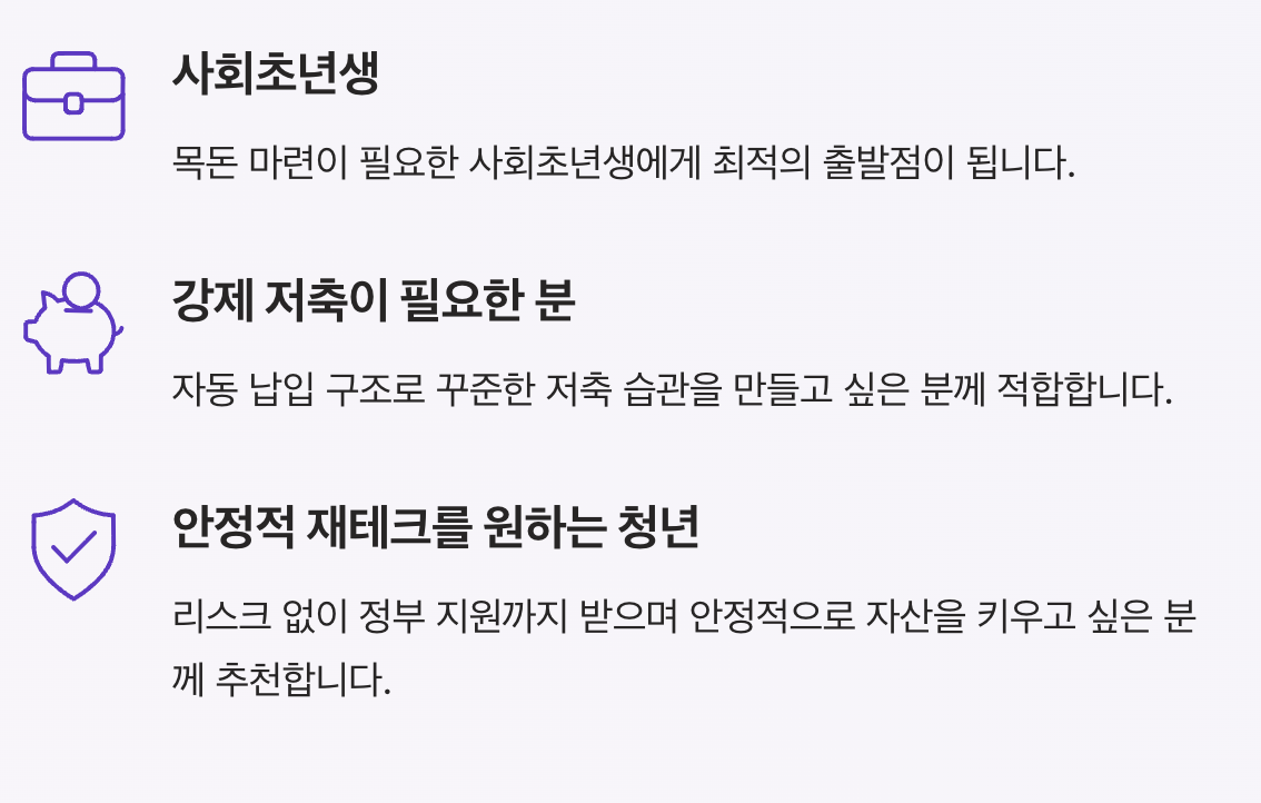 청년의 자산 형성을 지원하기 위해 만든 정책 금융상품입니다.