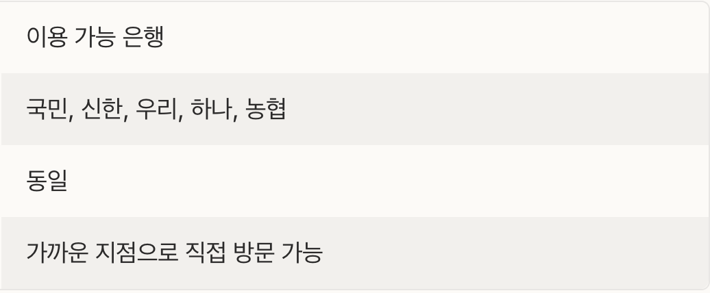 | 모바일 앱 | 국민, 신한, 우리, 하나, 농협 |