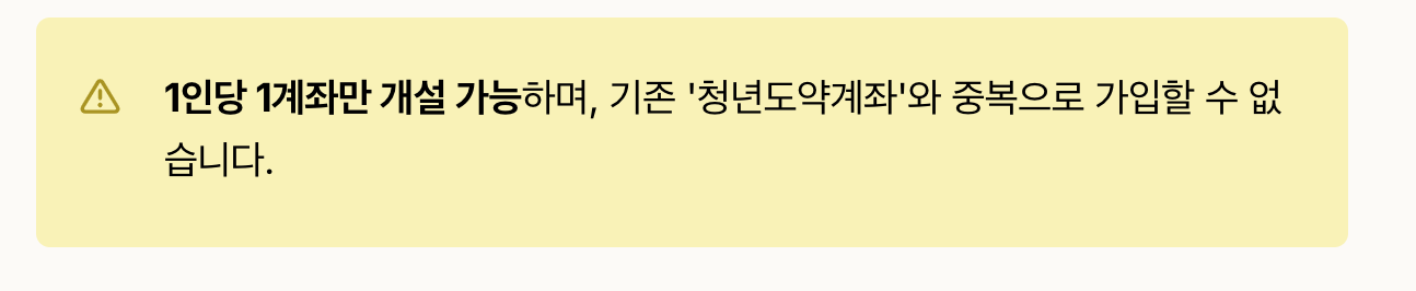 기존 ‘청년도약계좌’와 중복으로 가입할 수 없습니다.