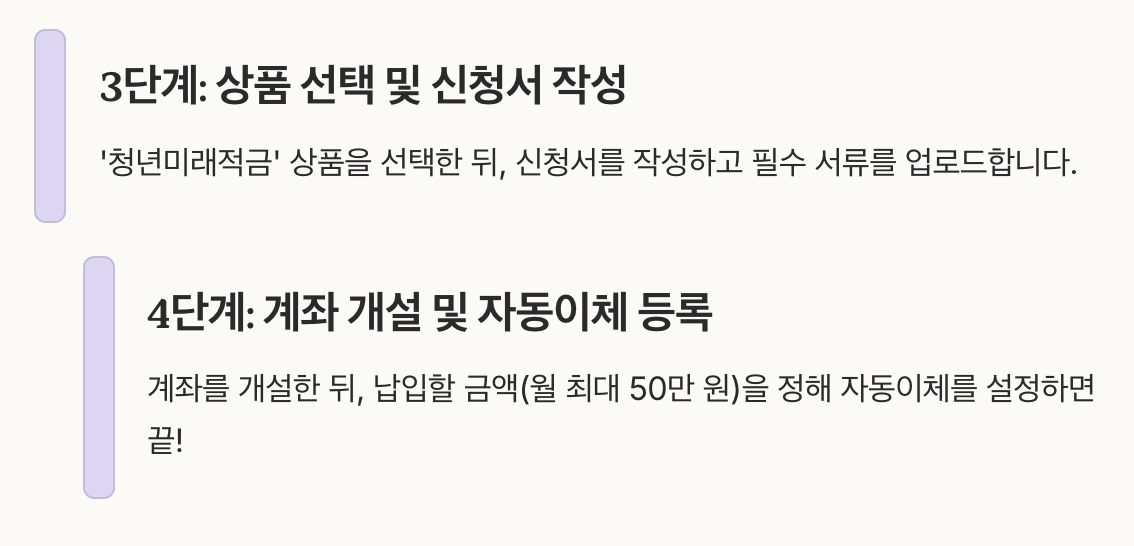 계좌를 개설한 뒤, 납입할 금액(월 최대 50만 원)을 정해 자동이체를 설정하면 끝!