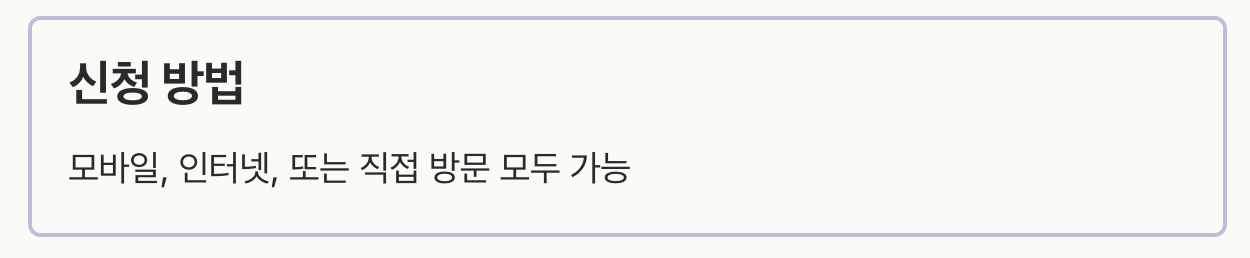 신청은 모바일, 인터넷, 또는 직접 방문 모두 가능하다는 점도 체크!