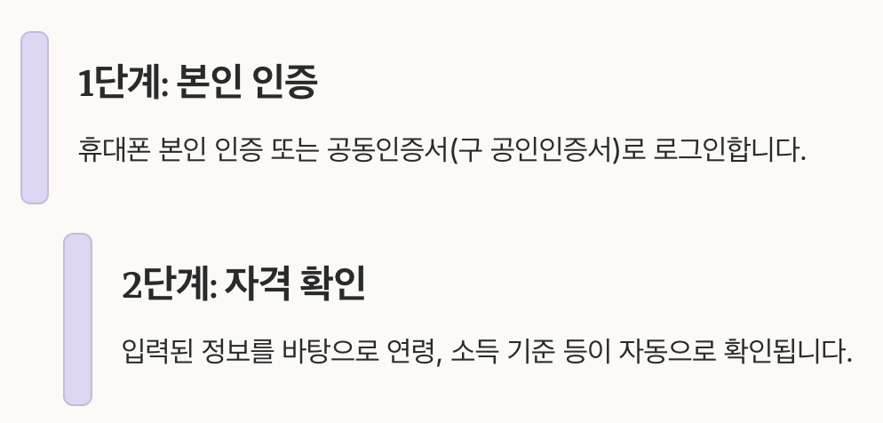 | 자격 요건 확인 (나이, 소득) | ✅ |