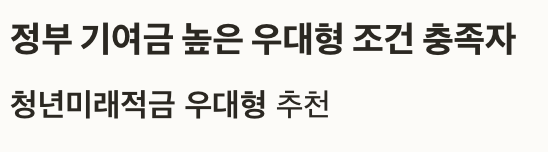 | 정부 기여금 높은 우대형 조건 충족자 | 청년미래적금 우대형 |