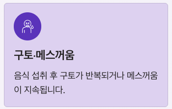 음식을 먹은 후 구토가 반복되거나 메스꺼움이 지속될 수 있습니다.