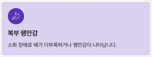 소화가 제대로 되지 않아 배가 더부룩하거나 복부 팽만감이 나타날 수 있습니다.
