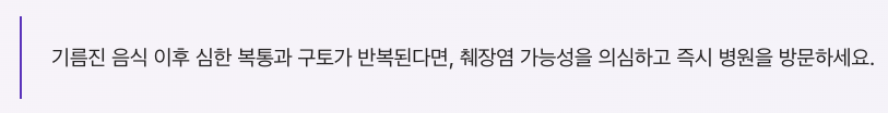 - 기름진 음식 섭취 후 심한 복통