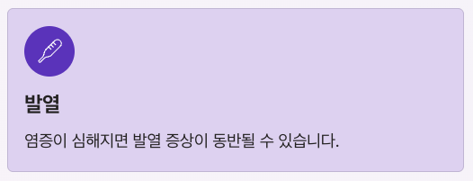 염증이 심해지면 발열 증상이 동반될 수 있습니다.
