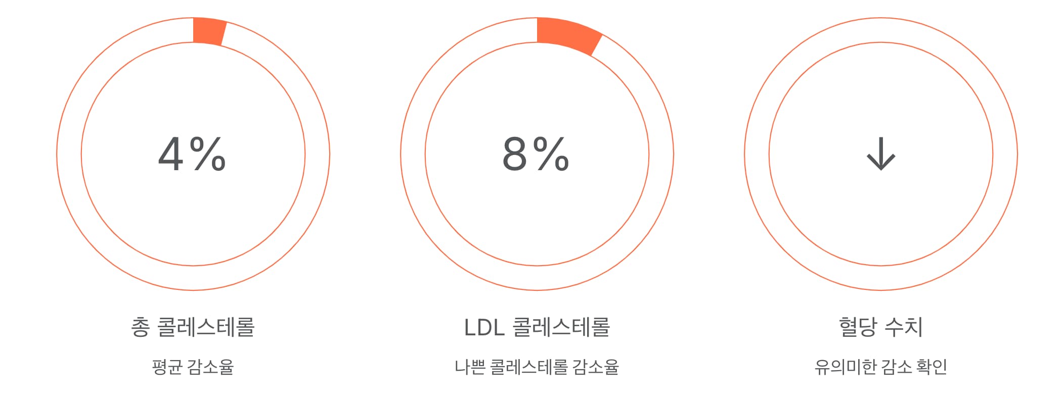 | LDL(나쁜 콜레스테롤) | 평균 8% 감소 |