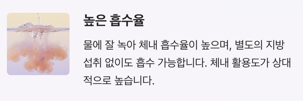 - 별도의 지방 섭취 없이도 흡수 가능