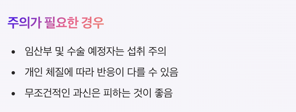 - 임산부 및 수술 예정자는 섭취 주의