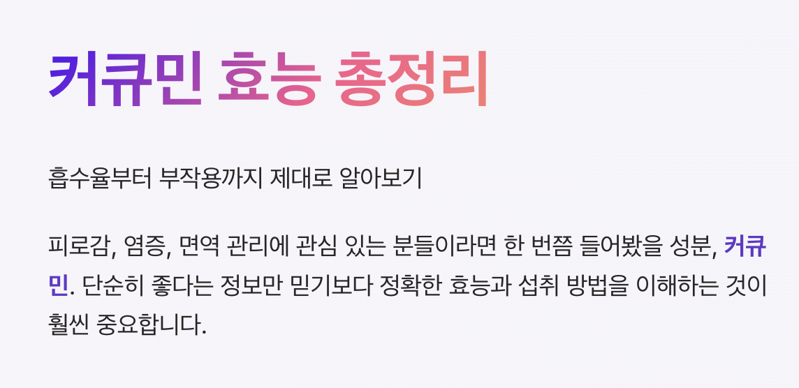 이번 글에서는 커큐민의 핵심 효능부터 흡수율, 부작용, 올바른 선택 기준까지 한 번에 정리해드립니다.