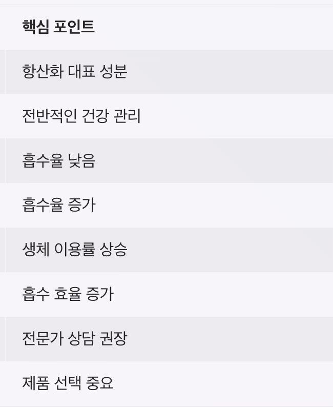 | 효과 체감 | 개인차 존재 | 꾸준한 섭취 필요 |
