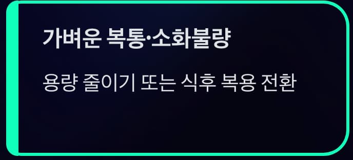 | 가벼운 복통·소화불량 | 용량 줄이기 또는 식후 복용 전환 |
