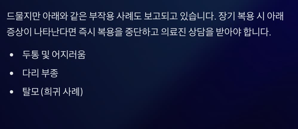 장기 복용 시 아래 증상이 나타난다면 즉시 복용을 중단하고