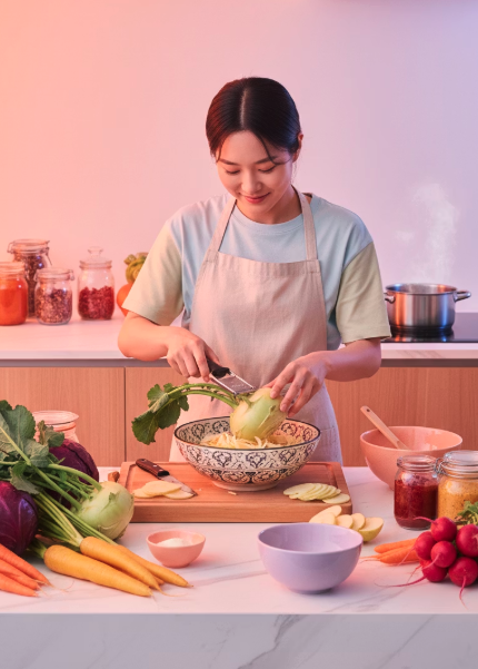 콜라비에는 식이섬유가 풍부하게 들어 있어 장 운동을 활발하게 도와줍니다.