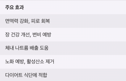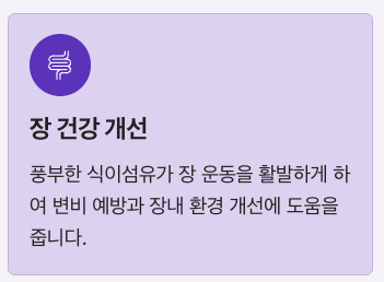 | 식이섬유 | 장 건강, 변비 예방 |