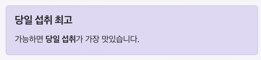 가능하면 당일 섭취가 가장 맛있습니다.