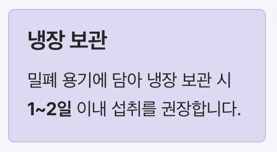 - 냉장 보관 1~2일