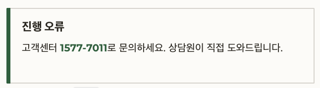 | 진행 오류 | 고객센터 1577-7011 문의 |