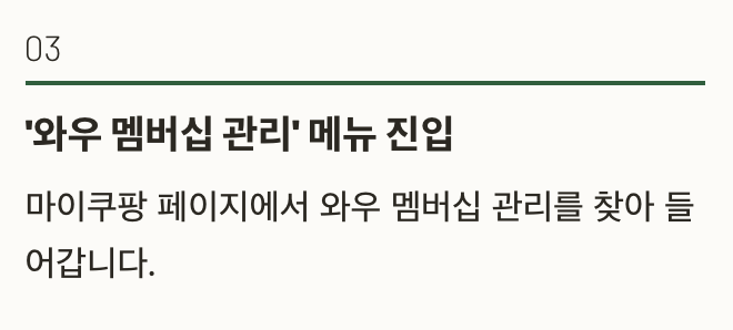 | 3단계 | ‘와우 멤버십 관리’ 메뉴 진입 |