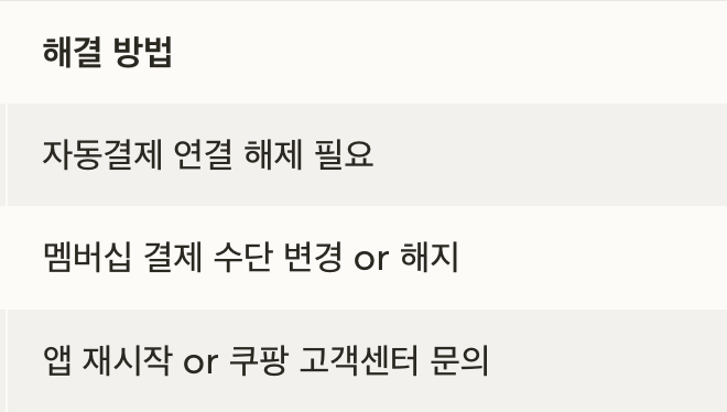 | 삭제 후 재등록 오류 | 앱 재시작 or 쿠팡 고객센터 문의 |