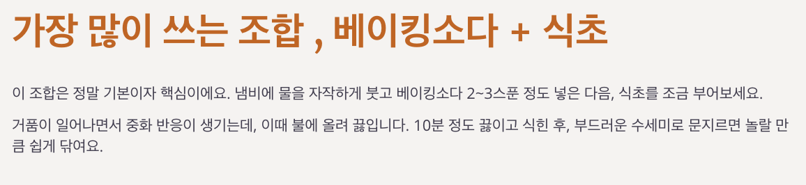 가장 많이 쓰는 조합, 베이킹소다 + 식초