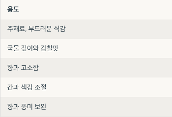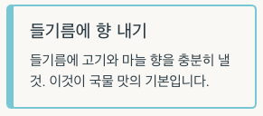 | 들기름 | 향과 고소함 |
