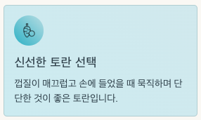 신선한 토란을 고르는 것이 첫 단계의 핵심입니다. 껍질이 매끄럽고 손에 들었을 때 묵직하며 단단한 것이 좋은 토란입니다.