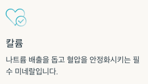 | 칼륨 | 나트륨 배출, 혈압 안정화 |