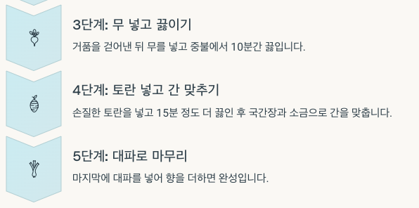4단계: 손질한 토란을 넣고 15분 정도 더 끓인 후 국간장과 소금으로 간을 맞춥니다.