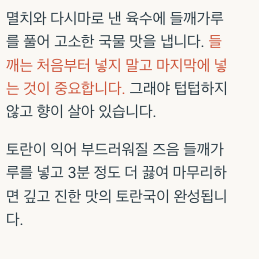 토란국 맛을 살리는 핵심 포인트