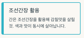 셋째, 간은 조선간장을 활용해 감칠맛을 살릴 것.